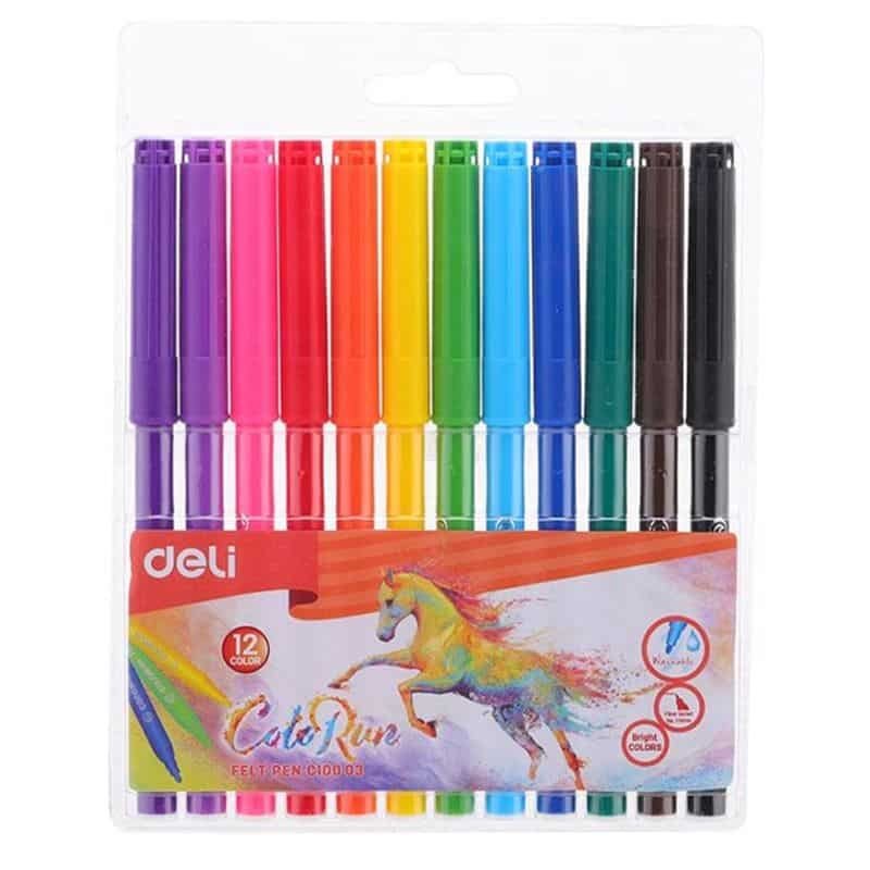 Deli Felt Coloring Pens – 12 Colors – EC10003